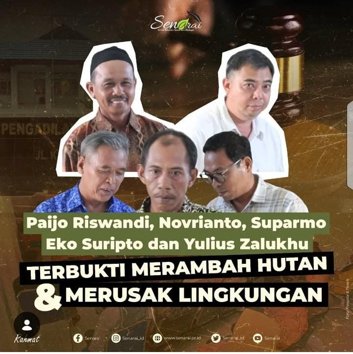 Pada 29 Juni 2024 Senarai pada akun instagramnya senarai_id telah memposting pemberitaan terkait putusan pengadilan terhadap terdakwa Paijo Riswandi, Novrianto, Suparmo Eko Suripto, dan Yulius Zalukhu (Sumber : Senarai_id)